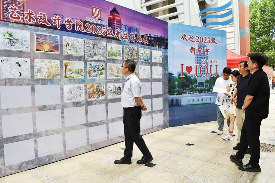 为丰富校园文化生活,展现新一代学子的创意才华与精神风貌,艺术设计学院2025级新 生作品展于迎新期间在通灌校区至善楼前展出,吸引了众多师生驻足欣赏。