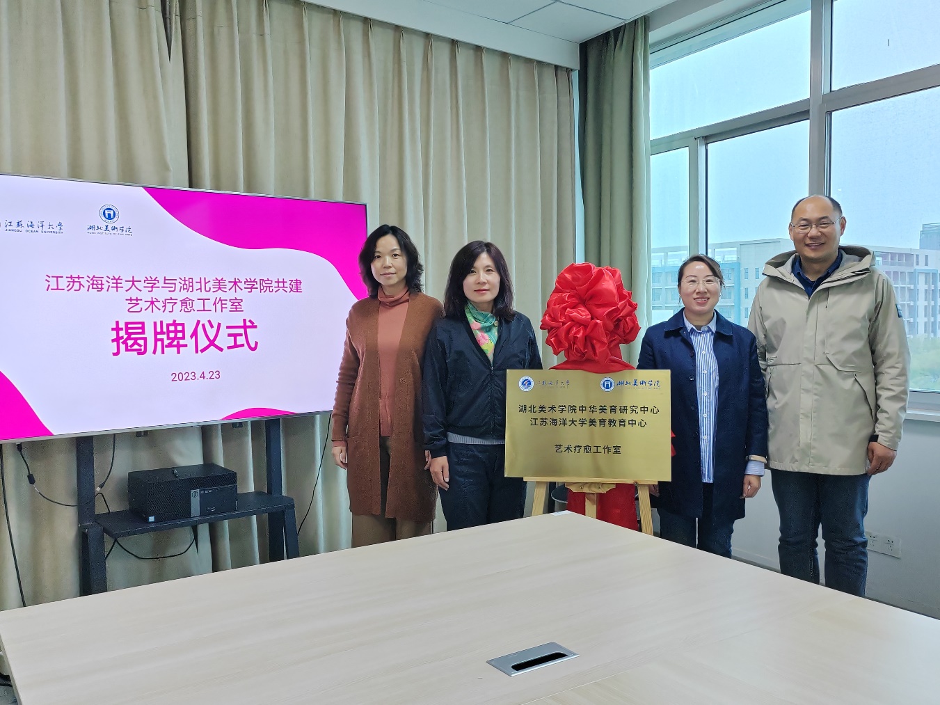 会后,曾英副院长、徐帆书记共同主持了湖北美术学院中华美育研究中心和江苏海洋大学艺术设计学院美育教育中心共建“艺术疗愈工作室”揭牌仪式。