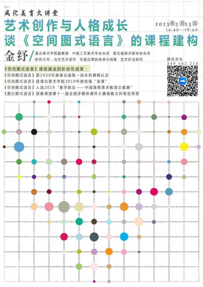 5月25日,我院邀请了湖北美术学院金纾副教授以线上讲座的方式,面向全体师生开展了以《空间图式语言》为主题的美育教育交流活动。学院党总支书记李春主持活动,副院长曾英、院党总支副书记王欢以及全体美育课程任课教师在艺术设计学院407会议室现场参加了此次讲座与交流活动。